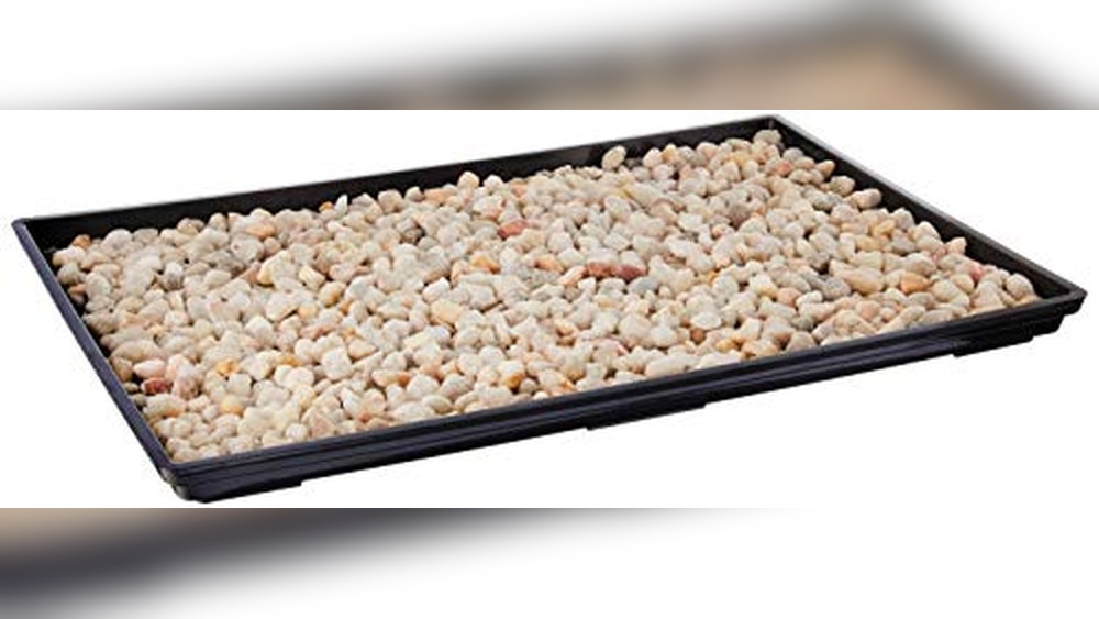Pebble trays help keep indoor plants healthy and happy. They add moisture and prevent water damage to floors.